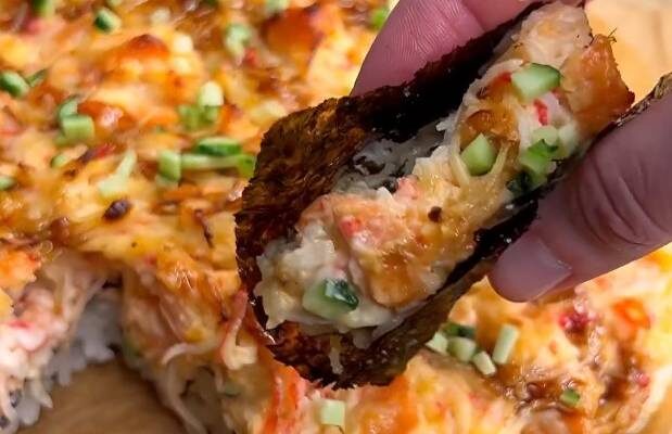 Как вкусно сделать Запеченный суши торт простой рецепт пошаговый в домашних условиях быстро. Запеченный суши-торт Ингредиенты. Рис - 225 гр