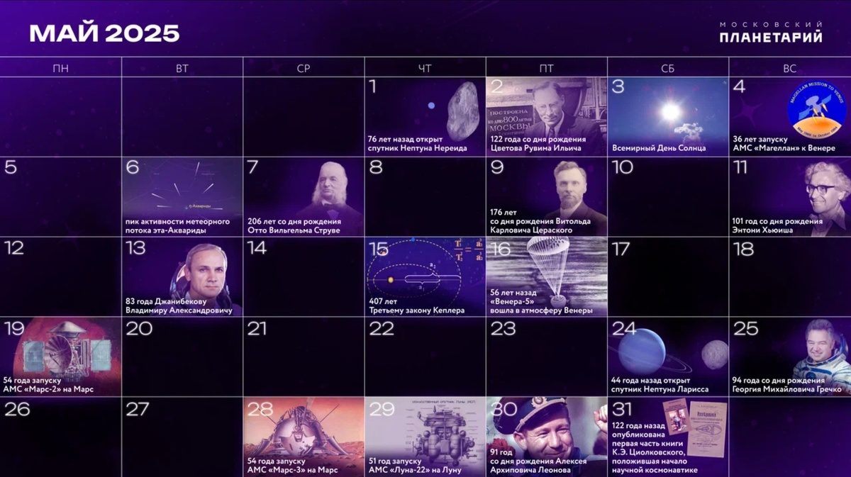 Избранные даты и события мая 2025 года в астрономии и космонавтике: