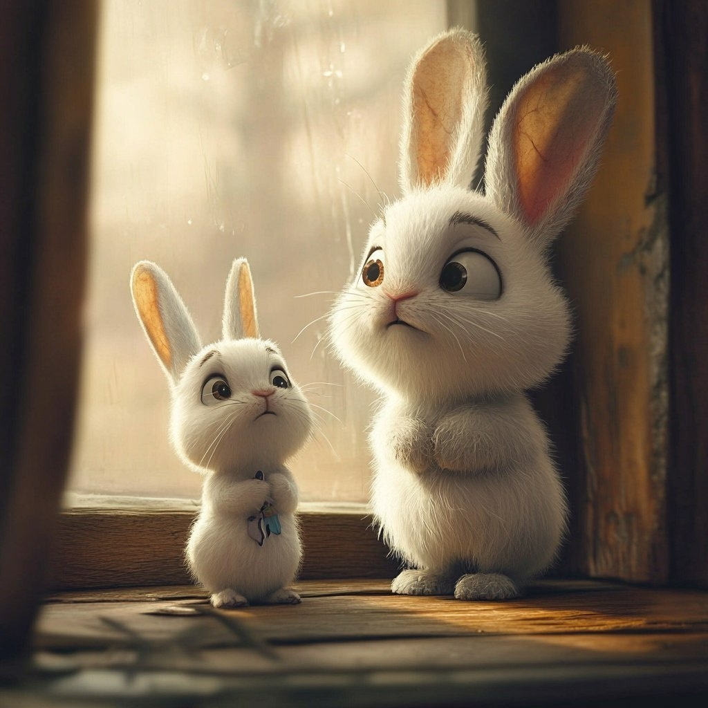 Создано на основе запроса: little bunny crying in front of his mom, pixar style --- Автоперевод: Маленький кролик плачет перед своей мамой, стиль Pixar Красиво получилось? 🤔 https://dzen.ru/id/65c0c65c86e4f837c27b24d7 #ИИ #AI #нейросеть #midjourney #art
