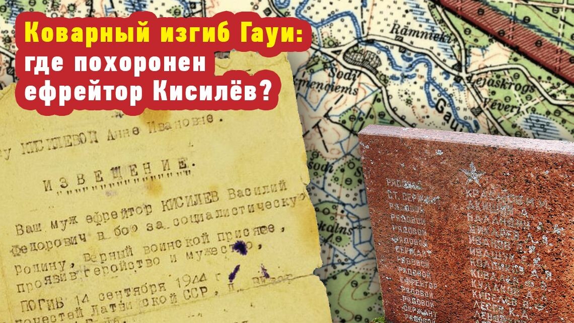 Неподалёку от Гауи на этом направлении 14 октября красноармейцы безуспешно форсировали реку Западную Двина в Риге, спеша на помощь товарищам, героически оборонявшим с трудом занятый плацдарм на её левом берегу. А перед этим красноармейцы действительно форсировали Гаую. И боец в тот день мог умереть от ран, полученных при форсировании реки Гауя днями ранее. А что там на этой реке ближе к Риге? Ага: воинское кладбище в посёлке Царникава (Carnikava) Адажского сельсовета. И вот таким образом имя ефрейтора Кисилёва появилось на памятных плитах. Точнее, перед этим в паспорте воинского захоронения, находящегося в центре посёлка в Царникавском парке (Carnikavas parks) на улице Юрас (Jūras iela). Посмотреть же донесение о потерях они не могли: во-первых, они были в советское время ещё засекречены, во-вторых, интернета тогда не было, нужно было ехать в архив в Подольске и долго и нудно копаться в документах.