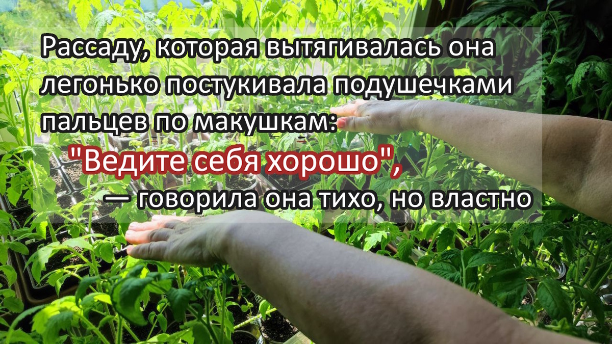 Написала мне зрительница очень длинное сообщение-историю. Мне эта история показалась очень интересной. Публикую с разрешения зрительницы, Марии К.. Орфография и пунктуация сохранены. Здравствуйте! Смотрела ваше видео про рассаду и хочу спросить одну вещь — может быть, вам знаком такой ритуал? Когда я училась в школе, на третьем этаже у нас был необычный кабинет биологии. Главной особенностью кабинета были большие окна и просто огромные подоконники. Подоконники были широкие, как столы, и весной превращались в настоящие огороды. На них появлялись деревянные ящики, выкрашенные белой краской, с аккуратными рядами перцев, томатов и другой рассады. Огород принадлежал нашей учительнице по биологии, Анне Михайловне. Она всегда приходила за час до начала уроков, закрывала дверь кабинета, подходила к окнам и совершала свой маленький ритуал: шла вдоль подоконников и мягко скользила ладонью по верхушкам растений, едва касаясь их, будто гладила учеников по голове. Рассаду, которая вытягивалась она