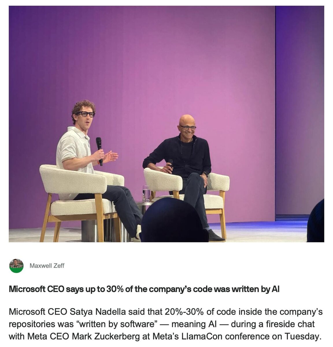 CEO Microsoft заявляет что20-30% всего кода в компании написал ИИ