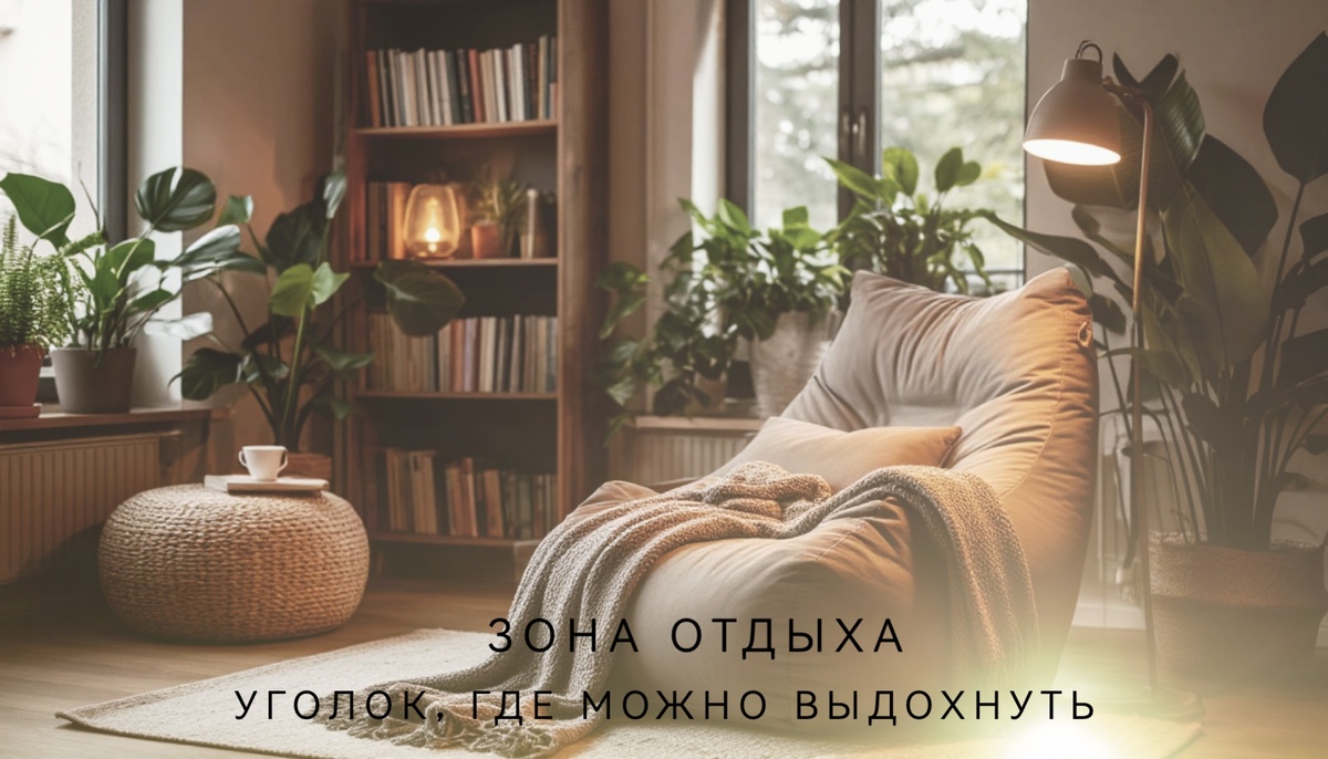 Зона отдыха: уголок, где можно наконец выдохнуть Иногда я замечаю, что весь дом работает. Кухня — варит, стирает, кипит. Ванная — сушит, моет, плещется. Спальня — не столько отдых, сколько склад подушек, зарядок и «уберись когда-нибудь». А ведь хочется в доме хоть один уголок, который не делает, а просто есть. Не требует, не шумит. Просто даёт тебе посидеть. Переключиться. Выдохнуть. И она не обязательно большая. Не обязательно дорогая. И не обязательно идеальная. Что может быть в зоне отдыха — идеи, которые легко воплотить Не обязательно покупать новое. Иногда просто поменять местами — и стул у стола становится окном в тишину. Главное — удобно и уютно. Лампа с тёплым абажуром, свеча, гирлянда — это не только красиво, но и замедляет. В прямом смысле. Мозгу хочется отдыхать при таком свете. Живое, зелёное, без претензий. Один горшочек с миртом или спатифиллумом — и уже чувствуется дыхание природы. Даже если не читаешь каждый день. Их просто приятно держать рядом. Как уютных, молчаливых