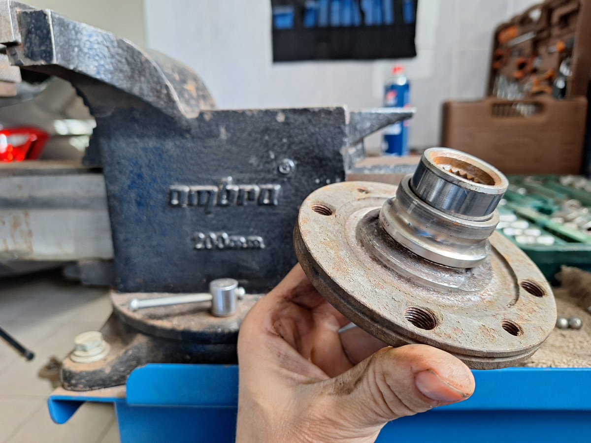 Снять ступицу с поворотного кулака или с цапфы - задача не самая сложная, если вы понимаете, о чём я говорю. Да, иногда и это не простая задача, однако самое интересное начинается дальше, когда нужно удалить внутреннюю обойму подшипника, которая осталась на ступице, а такое случается чуть ли не в 99 % случаев, ведь подшипник имеет свойство "разбираться" при демонтаже ступицы. И получаем картину маслом, которая знакома многим читателям, я в этом, почему-то, нисколько не сомневаюсь.