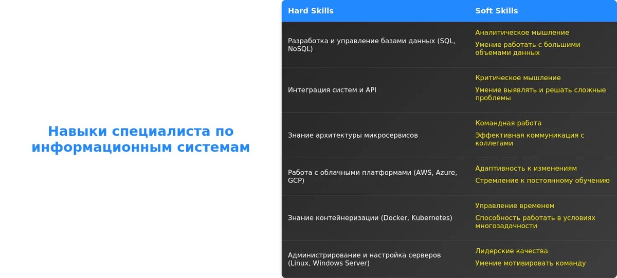 "Опытный специалист по информационным системам с **опытом внедрения ERP-систем**, оптимизации баз данных и интеграции облачных сервисов."