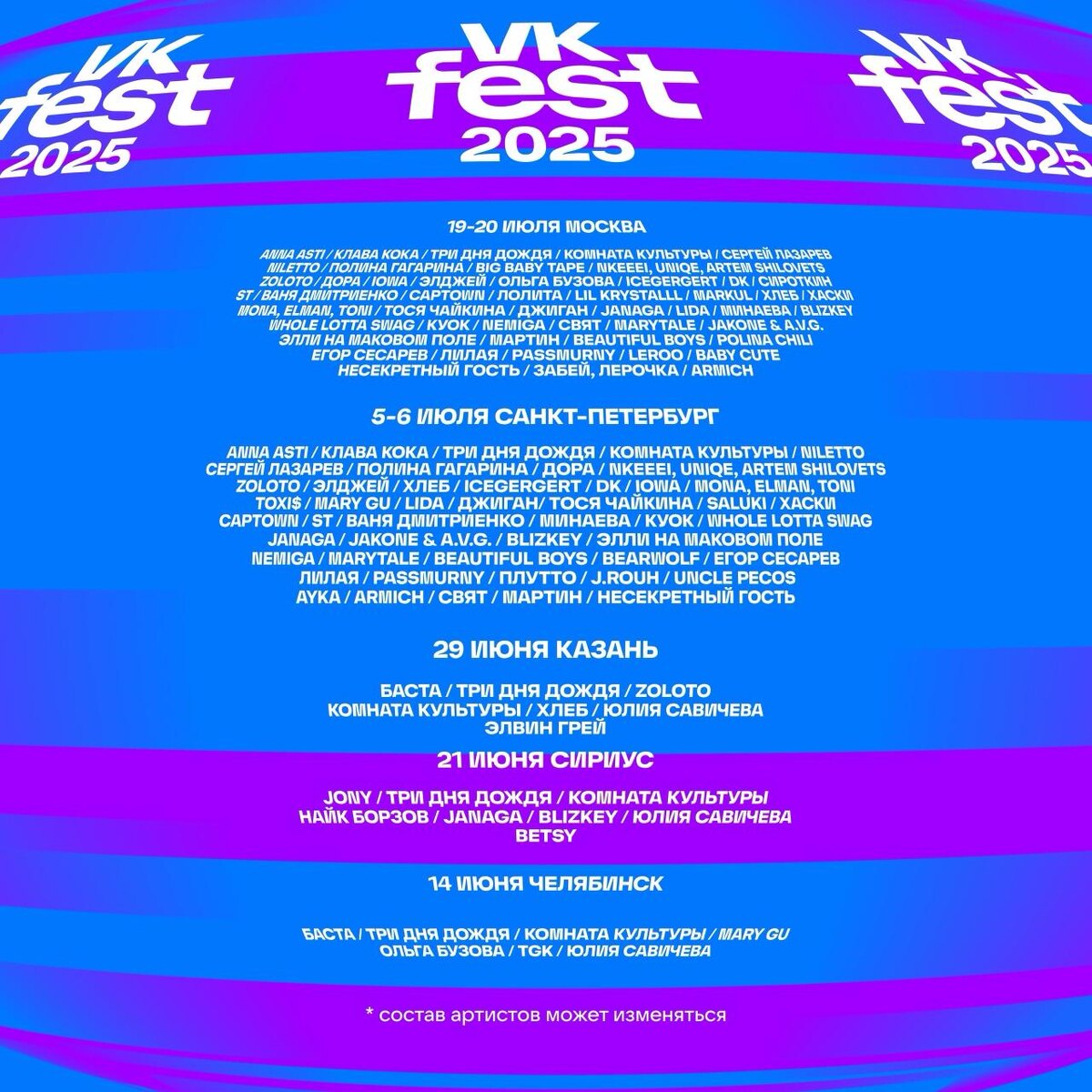 🎵 VK Fest анонсировал вторую волну артистов, которые выступят на фестивале в этом году
