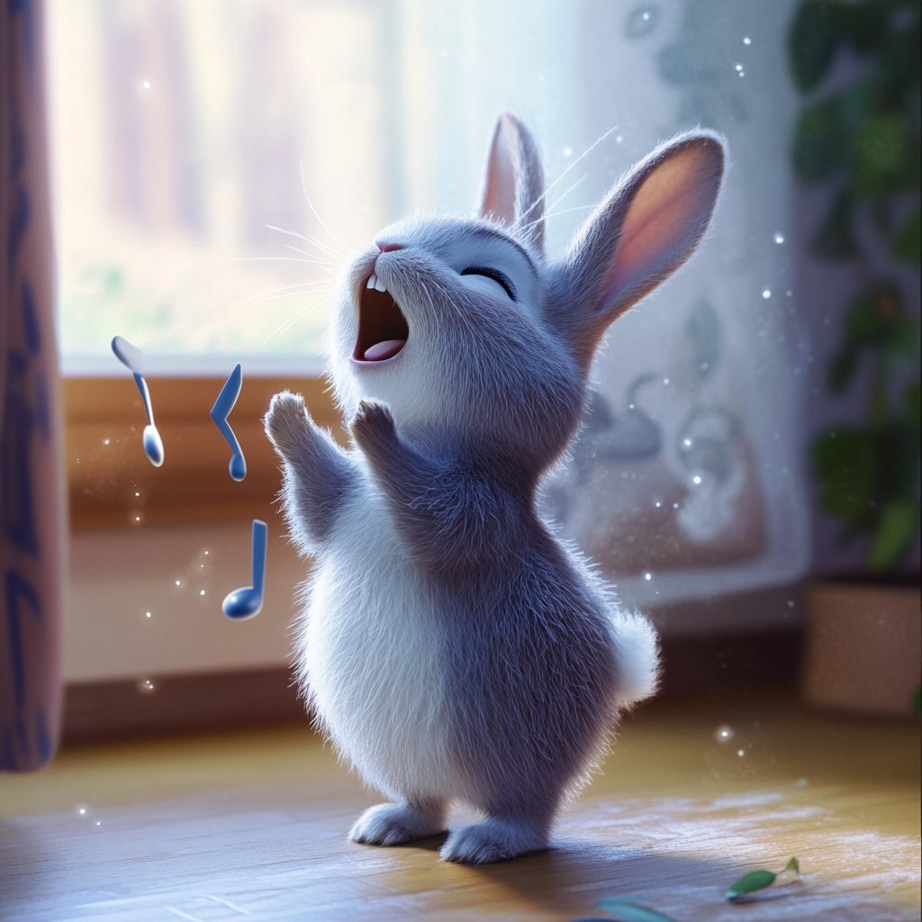 Создано на основе запроса: little bunny singing a few notes to his mom, pixar style