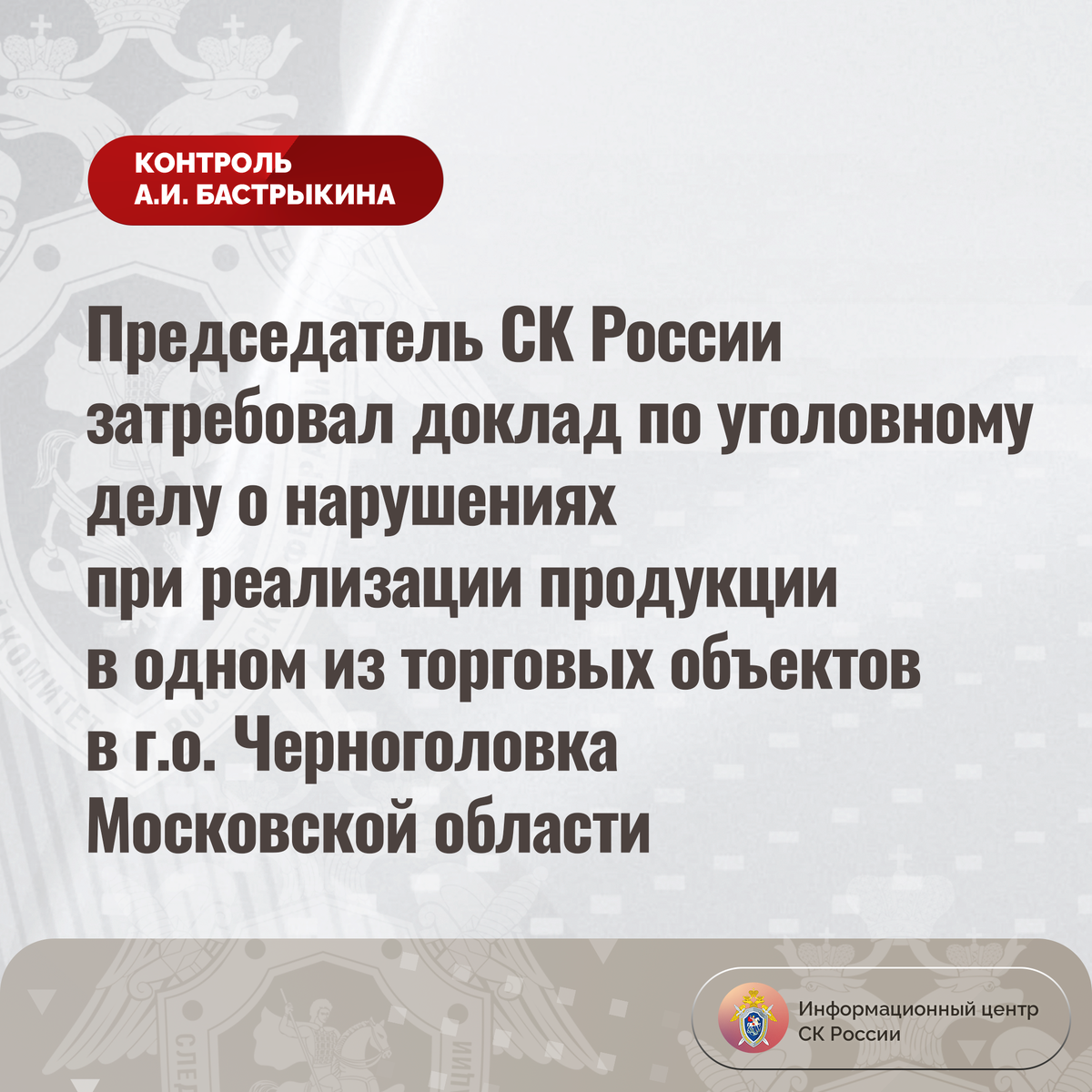 Председатель СК России затребовал доклад по уголовному делу о нарушениях при реализации продукции в одном из торговых объектов в г.о. Черноголовка Московской области