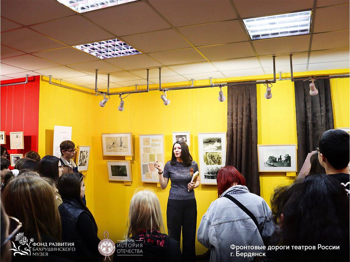 Бахрушинский музей открыл выставку о фронтовых театрах в Бердянске К 80-летию Великой победы Бахрушинский музей открыл выставку «Фронтовые дороги театров России» в Бердянском художественном музее имени И. И. Бродского. Экспозиция посвящена подвигу советских артистов, которые в тяжёлых условиях войны продолжали создавать спектакли и поддерживать дух бойцов. В основе выставки архивные материалы из фондов Бахрушинского музея. Среди экспонатов – театральные эскизы, афиши к знаковым спектаклям. Особое место занимает дневник легендарного фронтового театра «Искра», в котором собраны путевые хроники, творческие отчеты, письма и отзывы бойцов, рисунки и газетные вырезки. Гости выставки увидят фотографии выступлений артистов фронтовых бригад и театров. Они выступали на импровизированных сценах под открытым небом, на палубах кораблей, в госпиталях и воинских частях. Пели народные и советские песни, частушки. Их самоотверженный труд стал частью общего вклада в Победу. Выставка будет работать д