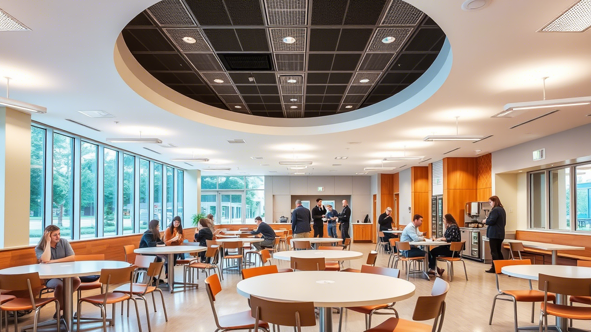 Столовая — это место, где люди расслабляются и наслаждаются общением за едой. Хорошее освещение помогает создать уютную и тёплую атмосферу, которая способствует отдыху и приятному времяпрепровождению. Недостаточное или слишком яркое освещение может испортить впечатление даже от самого вкусного обеда.