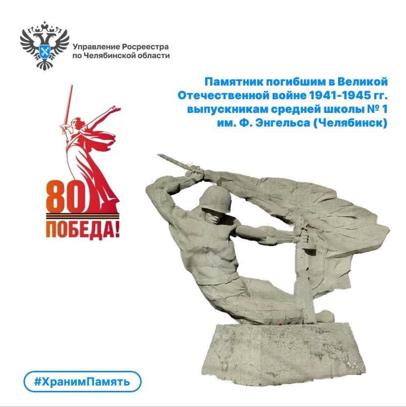 В рубрике «Храним память» мы рассказываем о памятниках, которые помнят историю подвигов и становятся связующим звеном между поколениями. Это символы благодарности, напоминающие о тех, кто отдал жизнь за мирное небо. Сегодня речь пойдёт о мемориале выпускникам школы № 1 им. Ф. Энгельса, погибшим в Великой Отечественной войне. Памятник погибшим в Великой Отечественной войне 1941-1945 гг. выпускникам средней школы № 1 им. Ф. Энгельса расположен у здания школы на ул. Красная, 59, в городе Челябинске. Когда в 1965 году, на тридцатилетнем юбилее школы, стало ясно, как много выпускников не вернулись с войны, появился отряд «Подвиг», который начал поиск имён погибших. К 1968 году удалось установить 67 героев — бывших учеников и учителей. Решение увековечить их память приняли всем коллективом, а деньги на памятник заработали сами школьники: собирали металлолом, макулатуру, трудились на стройке. 3 октября 1968 года горисполком разрешил строительство, подчеркнув: «Средства на памятник — результа