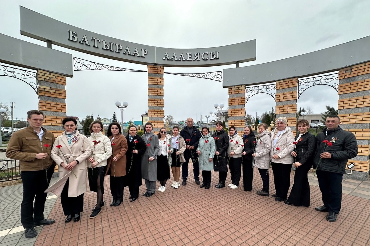 Бүген дәүләт ветеринария берләшмәсе хезмәт коллективы батыр сугышчыларыбыз рухын хөрмәтләп, "Батырлар аллеясы"нда һәйкәлгә чәчәкләр