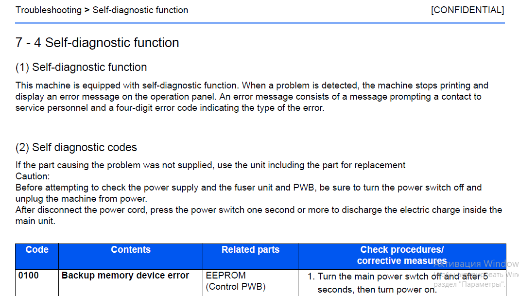 В аппаратах Kyocera предусмотрена функция самодиагностики.