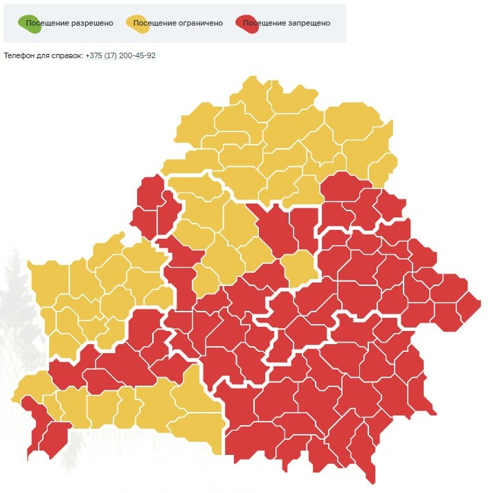 На большей части территории Беларуси запрещено посещение лесов из-за опасности пожара В остальных районах походы в лес ограничены. @SPUTNIKBY
