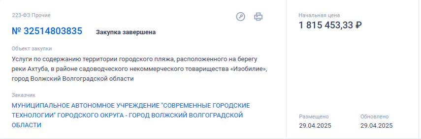 МАУ «СГТ» приступило к подготовке городского пляжа в СНТ «Изобилие» к купальному сезону. С 1 мая предприятие заключило договор с единственным подрядчиком на содержание территории до 31 декабря 2025 года. Сумма контракта превышает 1,8 млн рублей. В перечень работ входит: Подрядчик обязан завершить основные работы к официальному открытию сезона, традиционно стартующему в июне. В течение лета на пляже будут проводиться ежедневная уборка и мониторинг чистоты акватории.