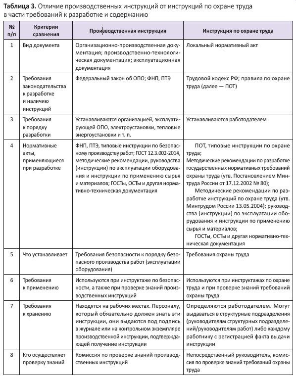 Отличие производственных инструкций от инструкций по охране труда в части требований к разработке и содержанию