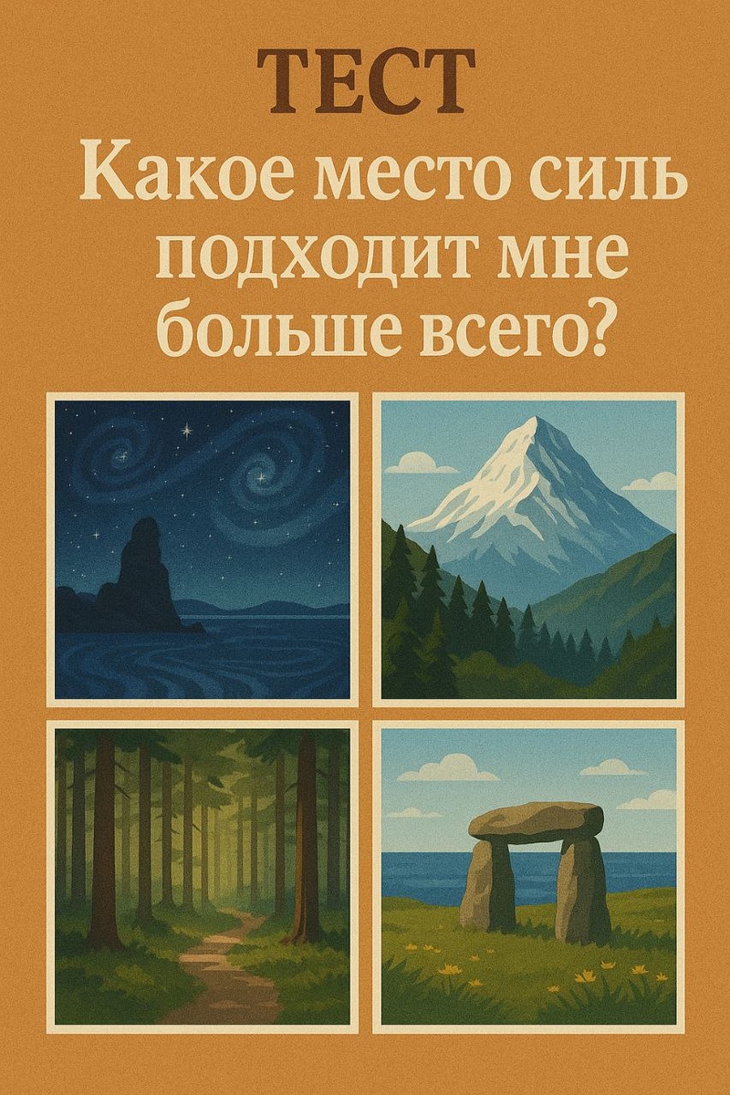 Хотите узнать, какое место силы идеально резонирует с вашей энергией и поможет вам обрести гармонию, вдохновение и внутренний покой? Пройдите этот тест и узнайте, куда вас тянет душа.