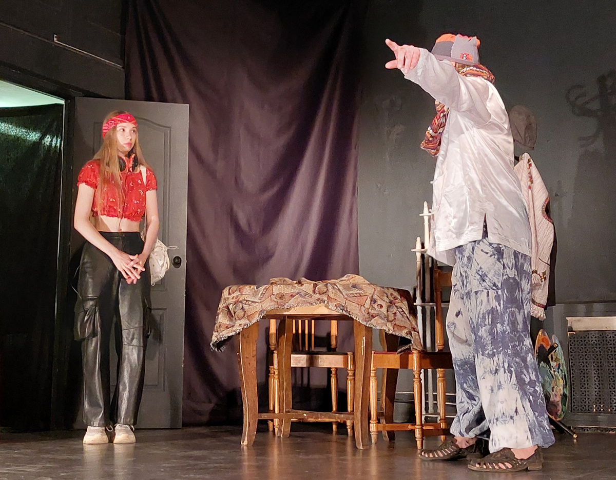 И хотя персонажей в нем было, как всегда, множество, актеров на сцене, как и прежде, всего двое: актер театра и кино Владимир Никифоров в роли Сальвадора Дали и молодая актриса Анна Юферова в роли журналистки Анны-Марии, сестры, жены и Музы Галы, а также в других женских и мужских ролях.