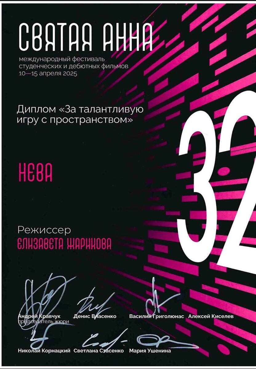 💥 Фильм «Нева» студентки ГИКИТ получил диплом кинофестиваля «Святая Анна