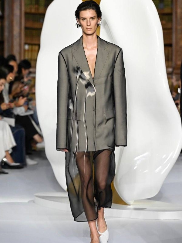 Степень прозрачности 🍐 Оглядываясь на показы известных модных домов, можно выделить один из основных трендов сезона SS’25: полупрозрачные ткани. Дизайнеры играют с объемами и текстурами, создавая многослойные образы из воздушной органзы Тренд легко добавить в привычные образы, сочетая полупрозрачность с вещами из плотной ткани. Актуально смотрится игра контрастов невесомой юбки и объемного джемпера или жакета с мужского плеча