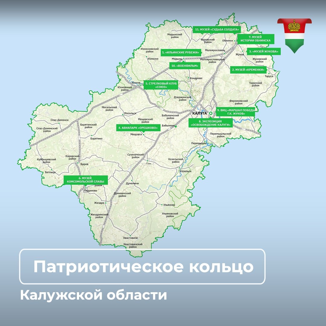 🟢По местам боевой славы в майские праздники Проект «Патриотическое кольцо Калужской области» создан к 80-летию победы в Великой Отечественной войне. Он поможет местным жителям и туристам сориентироваться по местам боевой славы региона. В проект входит 11 объектов в Калуге, Обнинске, Жуковском, Малоярославецком, Бабынинском, Юхновском, Людиновском и Медынского районах. Они отмечены на нашей карточке. Посещая места на карте с 9 мая по 31 августа, участники будут получать «карты патриота» и уникальные наклейки. Набрав определённое количество наклеек, можно будет выиграть брендированный сувенир от Центра развития туризма. Призы начнут выдавать уже с 1 июня. ❤️Главный официальный канал Калужской области. Подпишись