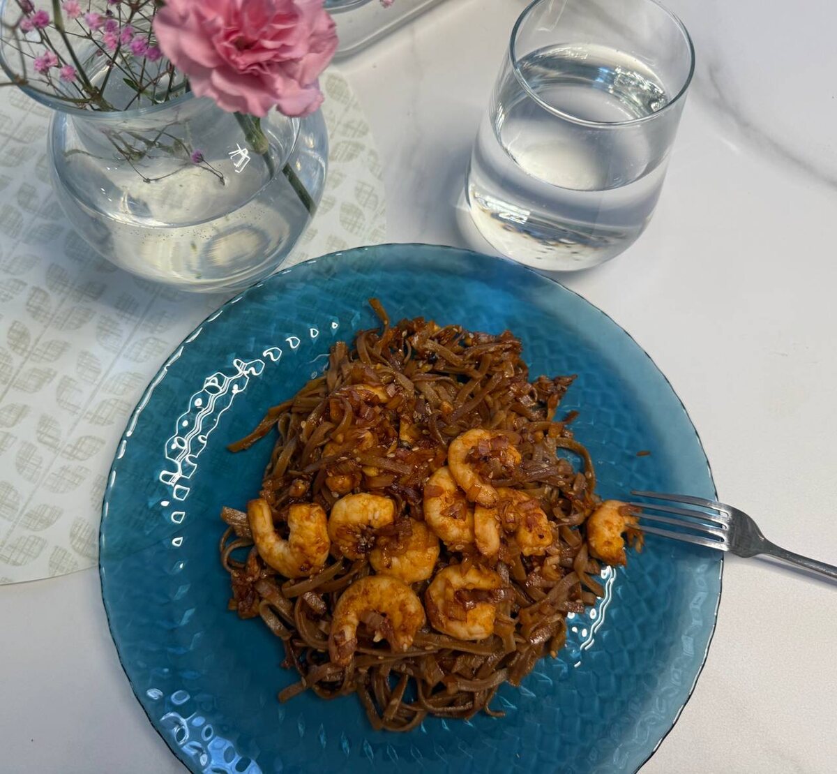 Сегодня гречневая лапша 🍜 с креветками 🦐