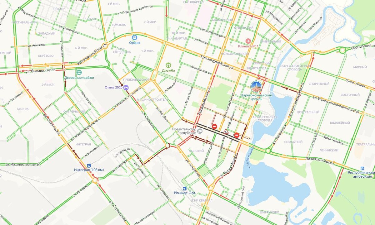 ΠΎΠ΄ΠΈΡ ΠΊ ΠΊΠΎΠ½ΡΡ. Π ΡΠ΅Π½ΡΡΠ΅ ΡΡΠΎΠ»ΠΈΡΡ Π·Π°ΡΡΡΠ΄Π½Π΅Π½ΠΎ Π΄Π²ΠΈΠΆΠ΅Π½ΠΈΠ΅.