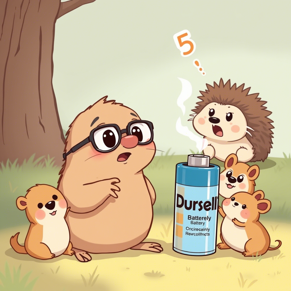 В подземном лабиринте на опушке волшебного леса жил крот по имени Прохор. В отличие от сородичей, обожавших копать туннели-горки и комнаты для червячных чаепитий, он мечтал о великих открытиях. Однажды, прокладывая новый ход, Прохор наткнулся на ржавую цилиндрическую штуку с надписью «Duracell». — Батарейка! — прошептал он (как-то раз услышал это слово у костра лесников). — Источник таинственной энергии! Он тайком утащил её в свою подземную лабораторию (переоборудованную кладовку с чернильными орешками и лупой из капли смолы). Прохор решил, что батарейка — ключ к волшебству людей. Начались опыты: сначала Прохор привязал батарейку к светлячку — чтобы «усилить свечение». Светляк улетел, возмущенно выбросив пучок яркого света прямо в подслеповатые глаза Прохора! Потом бросил батарейку в грибной суп — «для питательности». В итоге суп забулькал странно, но ёжик Колючик, попробовав, научился считать до пяти. После этого вставил батарейку в старый будильник — тут уже проснулся весь лес, вклю