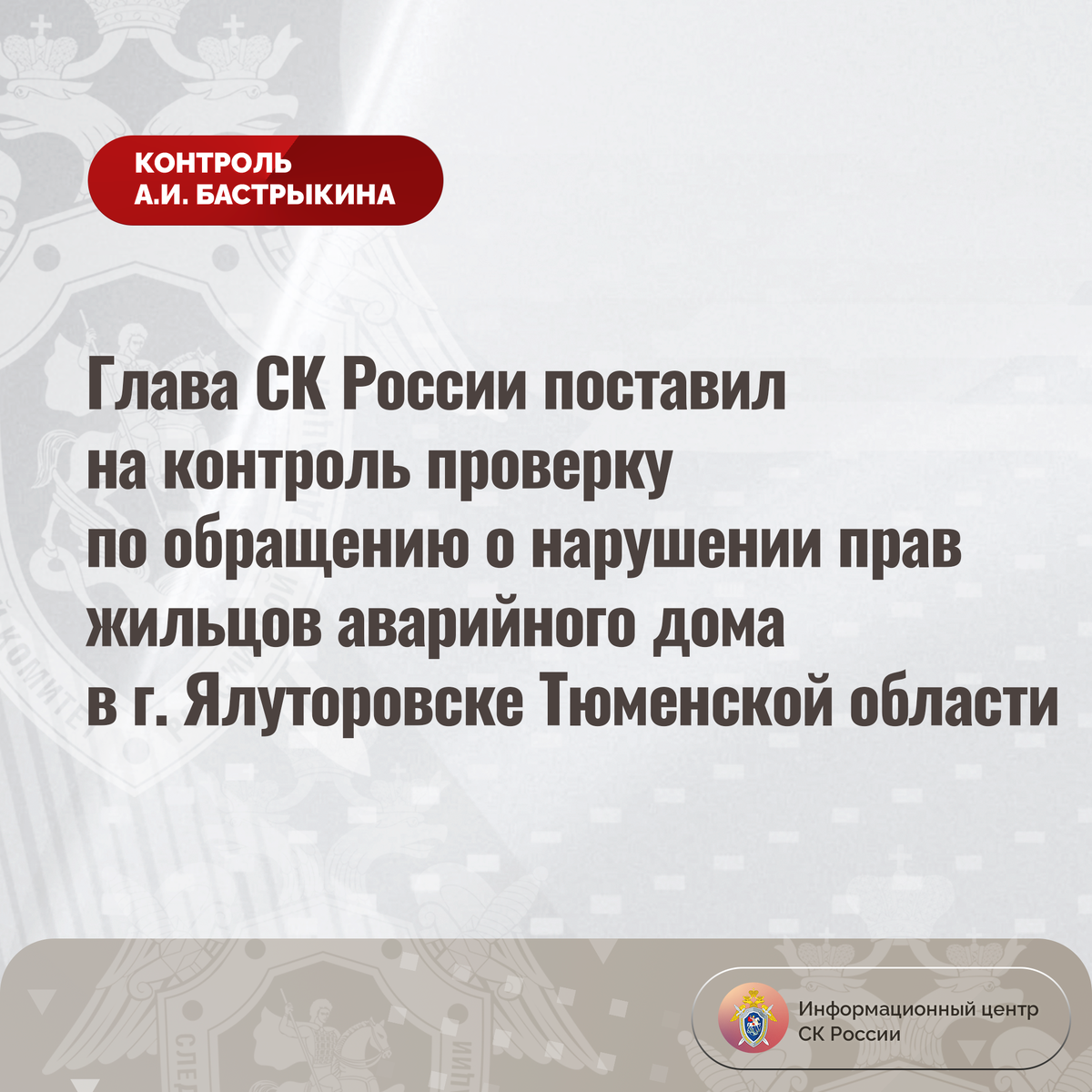 #СледственныйКомитет #СКРоссии #СКР #ИЦСКР #ИнформационныйЦентр #АлександрБастрыкин #ПредседательСКР #КонтрольПредседателяСКР #КомментарийКонтроль #ТюменскаяОбласть