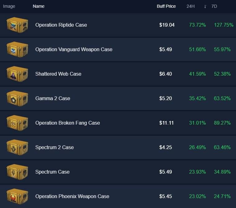 Цены на кейсы в CS просто взорвались — в среднем рост на 50%, а некоторые улетели вверх сразу на 127% всего за неделю