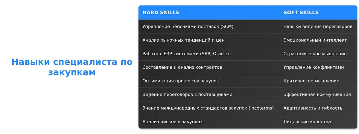 Изучите требования вакансий и отраслевые тренды. Например, в 2025 году актуальны навыки работы с искусственным интеллектом и автоматизацией закупок.