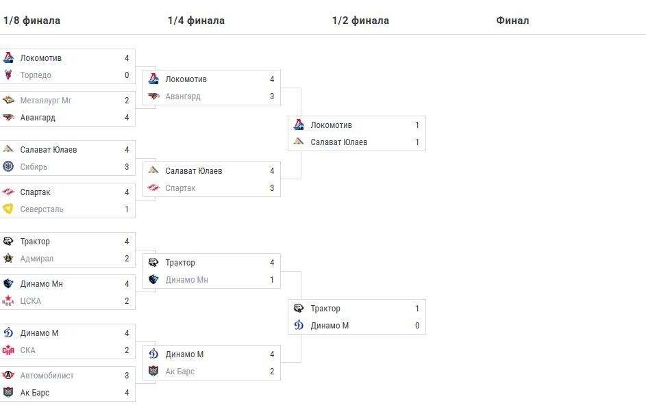 В Западной конференции нас ждет захватывающее противостояние между московским "Динамо" и челябинским "Трактором". На Востоке же выясняют отношения ярославский "Локомотив" и уфимский "Салават Юлаев". Давайте взглянем на ситуацию в этих сериях: