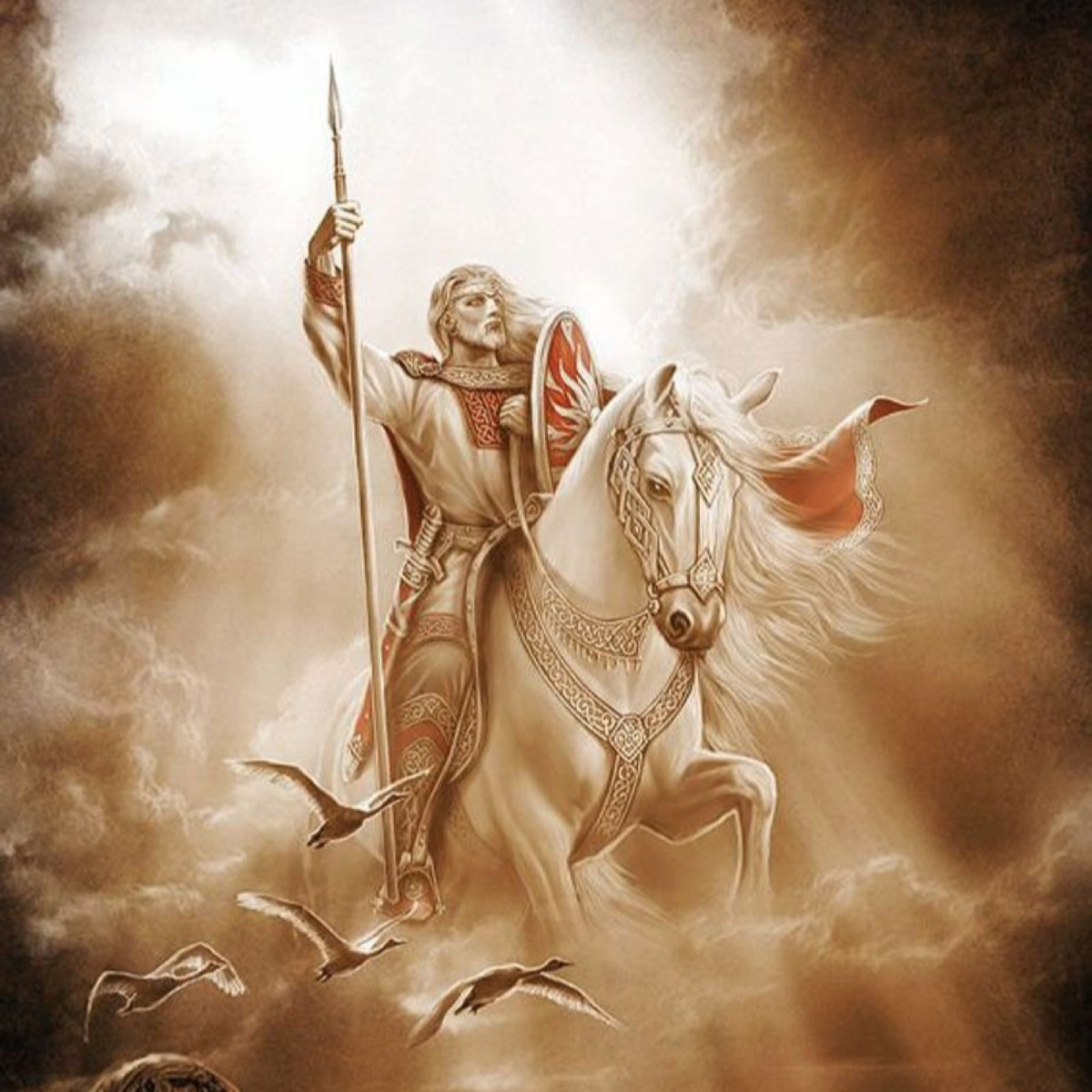 Мощный поток закатных лучей хлынул в пробитое в тучах окно… Поток Света и Тепла излился на стынущую осеннюю землю. И в этом потоке, низошедшем с небес, я увидел появление всадника на белом коне – статного воина-всадника в полной воинской справе, в шлеме и с багряным плащом, бившемся у него за плечами. Наконечник копья, котрое воин держал в руке высоко воздетым в небеса, сияло как маленькая острая звезда, разрывая своими лучами клочья накатывающего вечернего тумана.