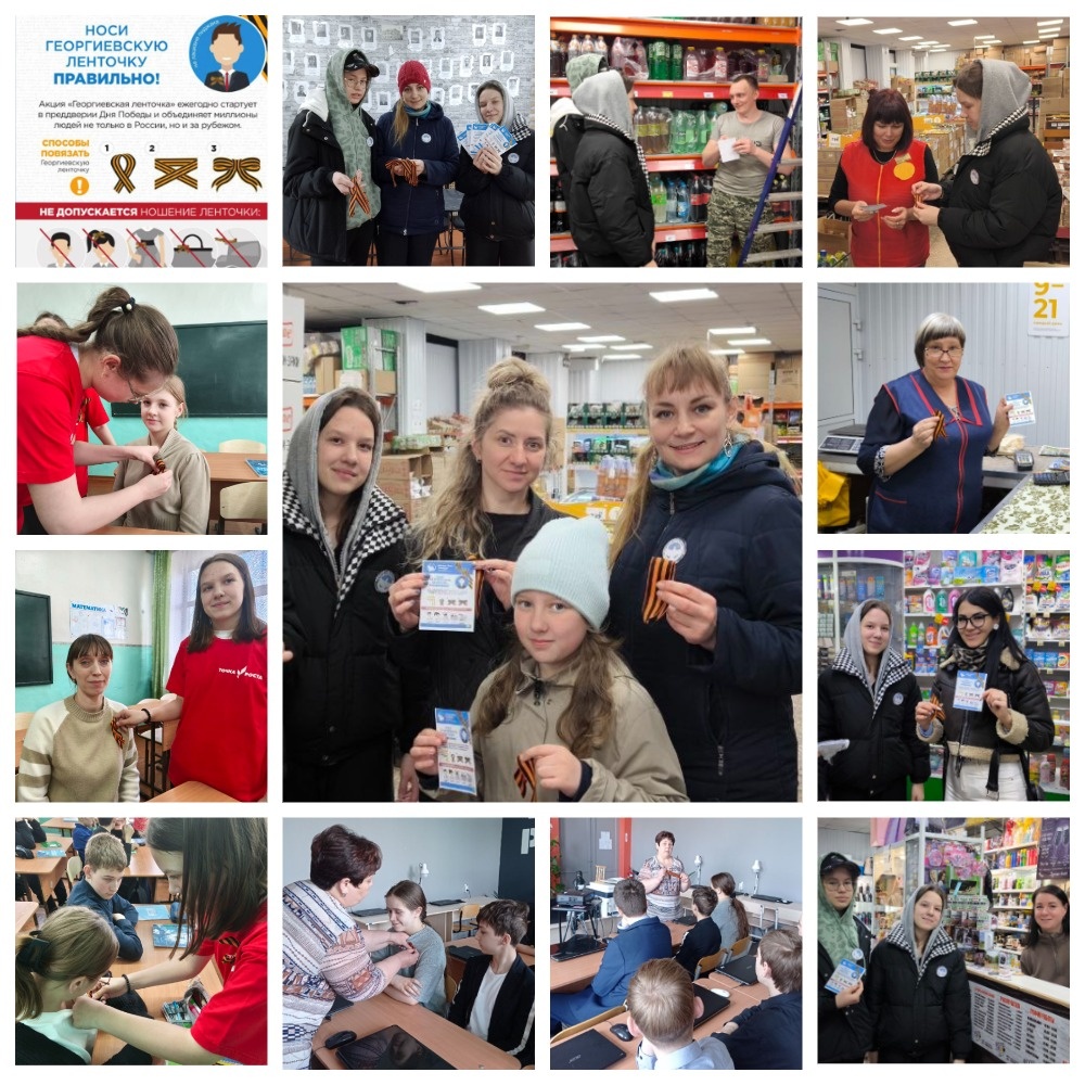 #Трек8 «Научные и образовательные проекты» Доброе дело 10: Десант Победы 24 апреля стартовала всероссийская акция «Георгиевская ленточка». Команда «Багульник» решила присоединиться и совершила Десант Победы. Участницы команды Нечаева Дарья, Солдатенко Анастасия и Инюшева Надежда Николаевна вышли к магазину «Хороший». Но погода в этот день решила показать свой капризный характер: дождь со снегом и сильный ветер пытались нам помешать. А «багульниковцы» оказались хитрее! И если не получилось раздать ленточки на улице, мы их раздавали в магазине! Как радовались люди, получив этот символ героизма и стойкости. Вместе с ленточками раздавали памятки с правилами ношения георгиевских лент. А на переменах между уроками второй смены с этой же целью посетили 7 б и 7 В классы. Акция продолжается! #80ДобрыхДелКПобеде #ФорумКлассныхРуководителей #Сферум80ДобрыхДел