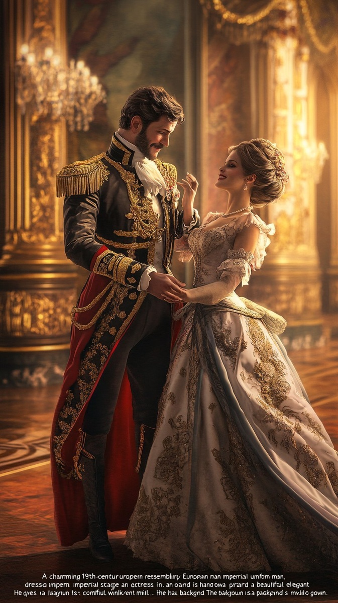 Создано на основе запроса: "A charming 19th-century European man resembling Napoleon III, dressed in an ornate imperial uniform, gracefully extending his hand toward a beautiful stage actress in an elegant gown. He gives a playful wink with a confident smile. The background is a grand theater or palace setting with warm, dramatic lighting. The scene radiates flirtation, elegance, and political charm. Style: raw, hyper-realistic, cinematic composition" --- Автоперевод: «Очаровательный европейский мужчина 19-го века, напоминающий Наполеона III, одетый в богатую имперскую униформу, грациозно протягивая руку к прекрасной сценической актрисе в элегантном платье. Он дает игривый подмигивание с уверенными улыбками. Фоны-это великий театр или паласовый обстановка с теплым, драматическим освещением. Отлично получилось? 🤔 https://dzen.ru/id/65c0c65c86e4f837c27b24d7 #ИИ #AI #нейросеть #midjourney #art