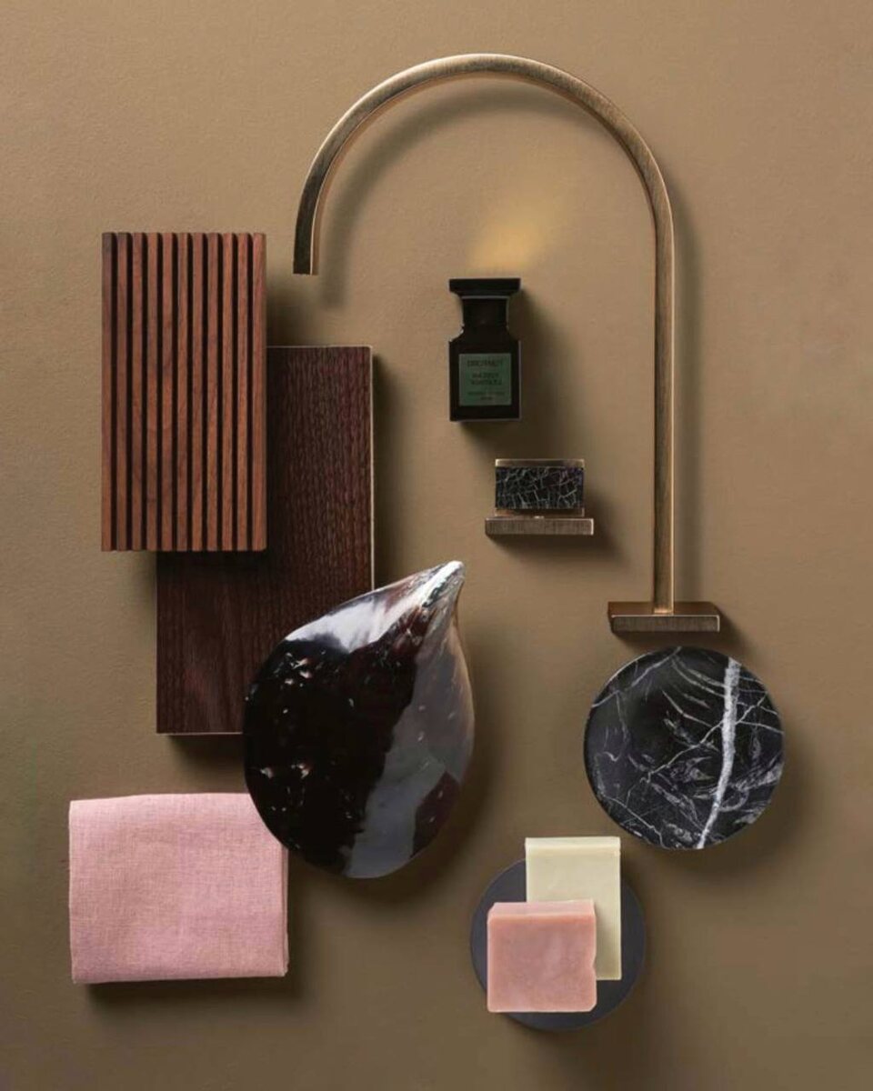 Металл в ванной комнате — как штрих на картине: незаметный на первый взгляд, но именно он собирает весь образ воедино. Мы уделяем ему особое внимание, особенно когда речь идёт о смесителях. Шлифованная латунь — про приглушённое тепло, создаёт ощущение спокойной основательности. Поверхность тактильная, с деликатной текстурой. Полированная латунь - ближе к классике. Зеркальная, тёплая, отражающая свет — она добавляет интерьеру торжественности. Мы используем её, когда нужно усилить ощущение роскоши без избыточности. Бронза — теплее и глубже. С чуть винтажным налётом, но при этом вполне актуальна в современных ванных. Хорошо сочетается с камнем, деревом. Хром — чистый, сдержанный, минималистичный и холодный. Но самый недорогой вариант. Никель — это мягкий и теплый вариант серебристого металла. Смотрится всегда теплее и богаче хрома. Медные и чёрные матовые покрытия — дают графичность. Идеальны в минималистиных интерьерах. В интерьере важны нюансы. И металл — как аксессуар в костюме: