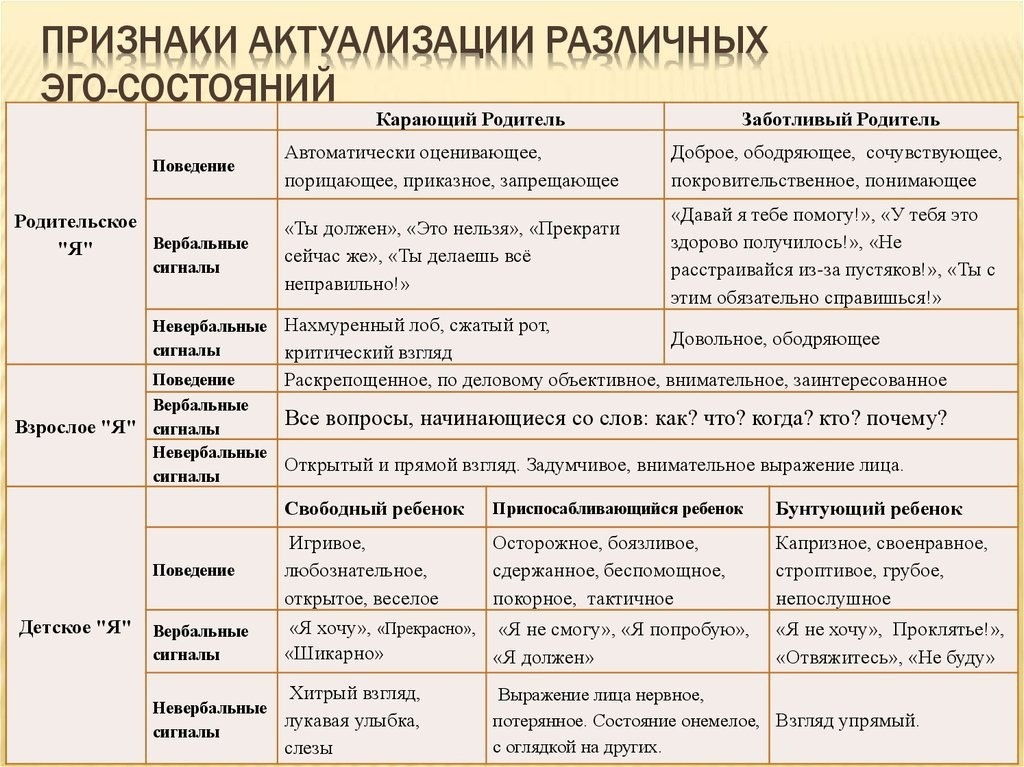 В таблице ⬆️ хорошо прописано как проявляется Плюсовое (+) и Минусовое (-) детское и родительское, а также взрослая (зрелая часть