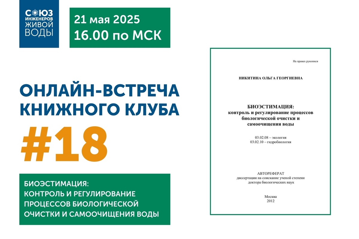 Книжный клуб Союза ИЖВ: биоэстимация 21 мая в 16:00 (мск) пройдет 18-я встреча Книжного клуба Союза ИЖВ. Рассказываем, почему на нее обязательно нужно пойти 😮 А вступить в Книжный клуб тут: https://vk.cc/cIi9iJ Что если мы могли бы не просто знать, какие вещества из стоков попадают в водоем, и как это влияет на состав вод, а регулировать естественные процессы биотической очистки водоема? А мы вообще-то и можем. С помощью биоэстимации. Биоэмтимация — это механизм, сходный по изначальному замыслу с биоиндикацией, но включающий в себя гораздо больше возможностей и задач. Впервые этот термин был придуман Ольгой Георгиевной Никитиной, и именно ее диссертацию "Биоэстимация: контроль и регулирование процессов биологической очистки и самоочищения воды" мы будем разбирать на встрече Книжного клуба. Мы ознакомимся с рядом проблем, которые помогает решить биоэстимация, рассмотрим основные ее отличия от других практик контроля и индикации состояния водной среды. Узнаем, кто такие "биоэстима