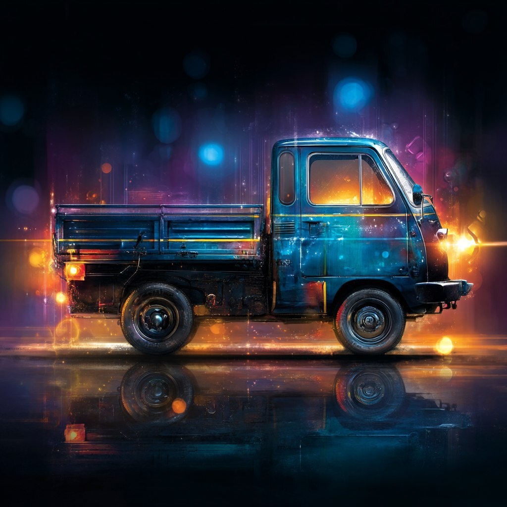 Создано на основе запроса: logo of a Subaru Sambar truck, viewed from the side, blue gradient with glowing effects