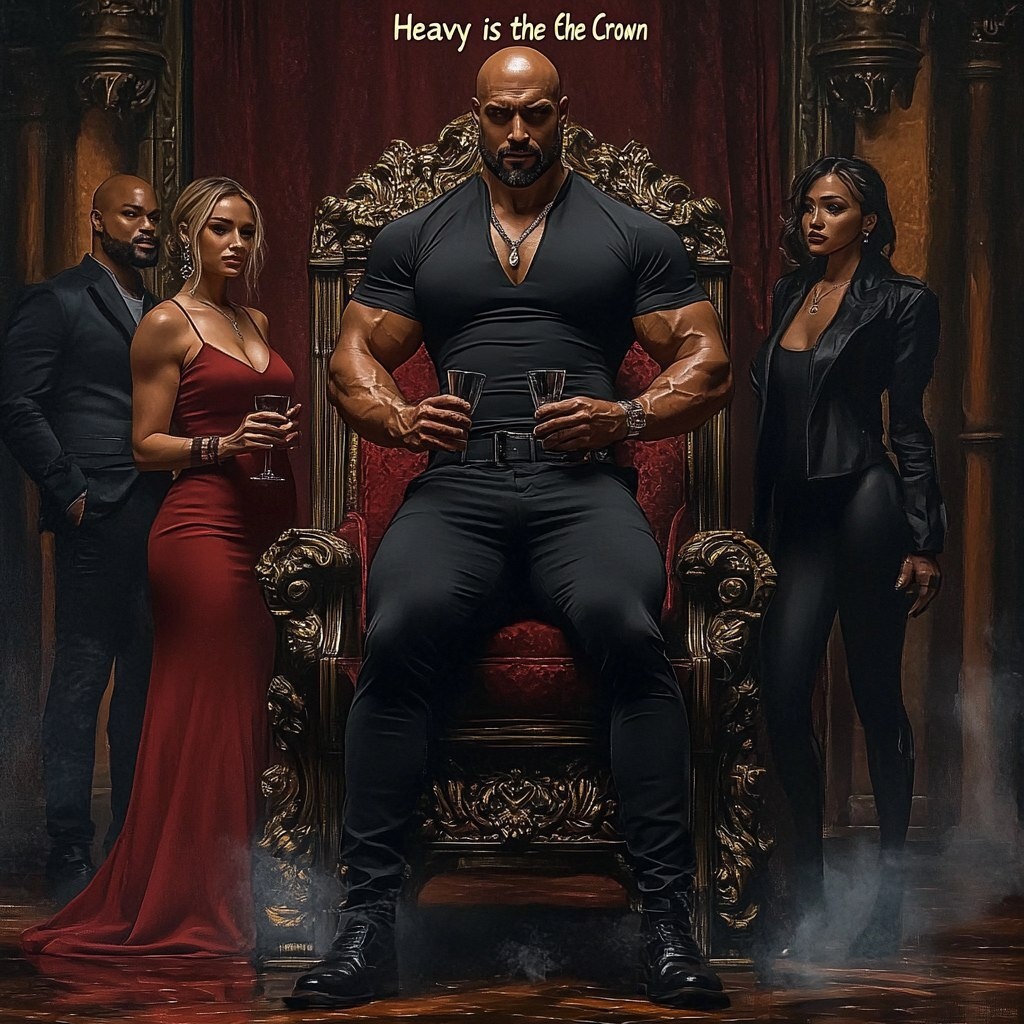 Создано на основе запроса: cinematic throne scene, powerful bald man seated on an ornate throne holding a glass, surrounded by five distinct figures a confident woman with short blond hair and hoop earrings, a woman in a red dress beside him, a calm woman in a blazer, a graceful woman in a flowing gown, and another sharply dressed man. Regal setting with red velvet backdrop, oil painting style, dramatic lighting, gold serif title "Heavy is the Crown" at the top --- Автоперевод: Кинематографическая тронная сцена, мощный лысый мужчина, сидящий на богато украшенном троне, держащем стакан, окруженную пятью разными фигурами, уверенная в себе женщина с короткими светлыми волосами и серьгами -обручами, женщина в красном платье рядом с ним, спокойная женщина в пиджаке, изящная женщина в плавном платье и еще один резко одетый мужчина. Хорошо выглядит? 🤔 https://dzen.ru/id/65c0c65c86e4f837c27b24d7 #ИИ #AI #нейросеть #midjourney #art