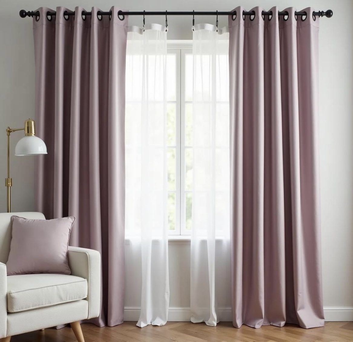 После недели использования стало понятно, что текстиль не справляется с защитой от яркого утреннего солнца. Пришлось дополнять композицию блэкаут-шторами на отдельном карнизе.