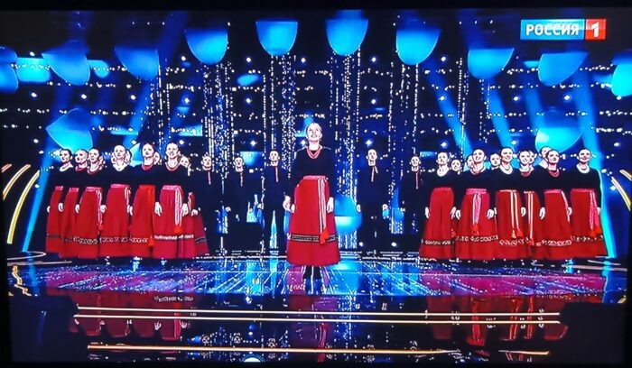 22ч. 00 мин. В прямом эфире телеканала «Россия-1» начался финал второго сезона программы «Ну-ка, все вместе! Хором!», где участники сражаются за кубок и пять миллионов рублей. Сегодня в числе участников финала для «сотни» первым спел народный коллектив «Хор русской песни» Владимирского областного музыкального колледжа имени А. П. Бородина. Фото с экрана телевизора И вновь потрясающее выступление хора заставило восхиться им всех экспертов, том числе и короля российской эстрады Филиппа Киркорова, и лидера «сотни» Сергея Лазарева. В результате, Владимирский коллектив снова получил от «сотни» 100 баллов!!! В настоящее время конкурс продолжается. «Держим кулачки» за наших! 00 ч. 40 мин. До финального батла дошли три коллектива: Владимирский «Хор русской песни», единственный набравший 100 баллов, Капелла Дмитрия Железнова из Казани и хор Уральского федерального университета, которые набрали одинаково – по 99 баллов! 01 ч. 05 мин. На финальном батле хор Уральского федерального университета по
