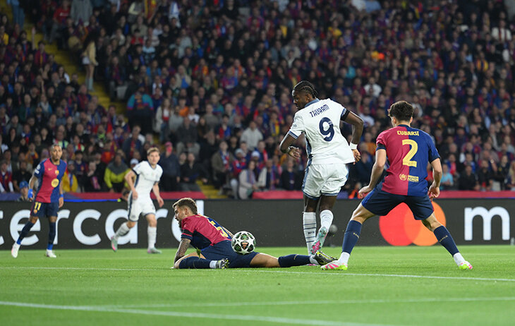 Быстрее только Станкович. «Интер» начал гостевой полуфинал ЛЧ с шедевра: Маркус Тюрам подстроился под нас Дензела Думфриса на небольшой высоте и переправил в дальний вот так. Вот так! Это движение просто невозможно исполнить еще изящнее. Поза сразу после удара со скрещенными ногами – только лишнее доказательство. Это 30-я секунда, первая атака – самый быстрый гол в истории полуфиналов Лиги чемпионов за всю историю. И второй в ЛЧ-истории всего «Интера»: быстрее был только нынешний тренер «Спартака» Деян Станкович в 2011-м против «Шальке», успел к 26-й секунде, уточнила Opta. Маркус Тюрам устроил незабываемое, рекордное. Историческая красота. А в середине первого тайма Думфрис добавил к ассисту и свой гол: «Интер» внезапно повел в гостях 2:0. И благодаря этому уже не так было страшно, что забил Ламин Ямаль на 25-й – ведь он лишь компенсировал пяточку Тюрама. И только потом Ферран Торрес, ближе к концу тайма, сравнял. Как Тюрам запустил безумно яркий и красивый матч, так дальше и пошло!