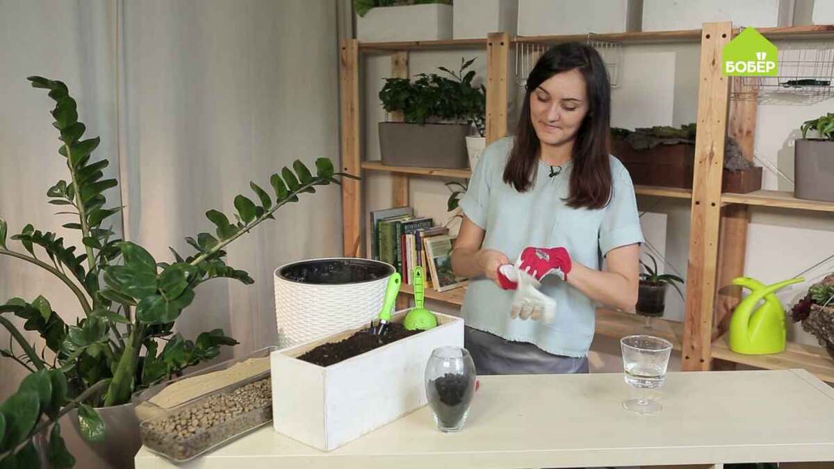 Это уникальное растение, поскольку неприхотливо к освещению и поливу. Однако в какой-то момент оно разрастается до очень больших размеров, и немногие знают, что с ним делать. Опытный флорист расскажет, как правильно размножить замиокулькас и посадить давшие корни черенки. Смотрите внимательно! Замиокулькас — очень ядовитое растение, сок которого может вызывать ожог слизистой оболочки. Вот почему работать необходимо в перчатках. Обрежьте самые длинные ветки при помощи чистого ножа или секатора. Обратите внимание, что у большого растения не рекомендуется срезать более двух веток за раз. Замиокулькас можно размножать не только веточками, но и листьями. Срежьте с ветки несколько листов, которые впоследствии тоже нужно укоренить. Немного укоротите длинные ветки и оставьте сохнуть примерно на 30 минут. Срезы, оставшиеся на растении, обработайте углём мелкой фракции, чтобы обеззаразить. Для укоренения возьмите вазу с водой и предварительно добавьте небольшое количество угля, который служит а