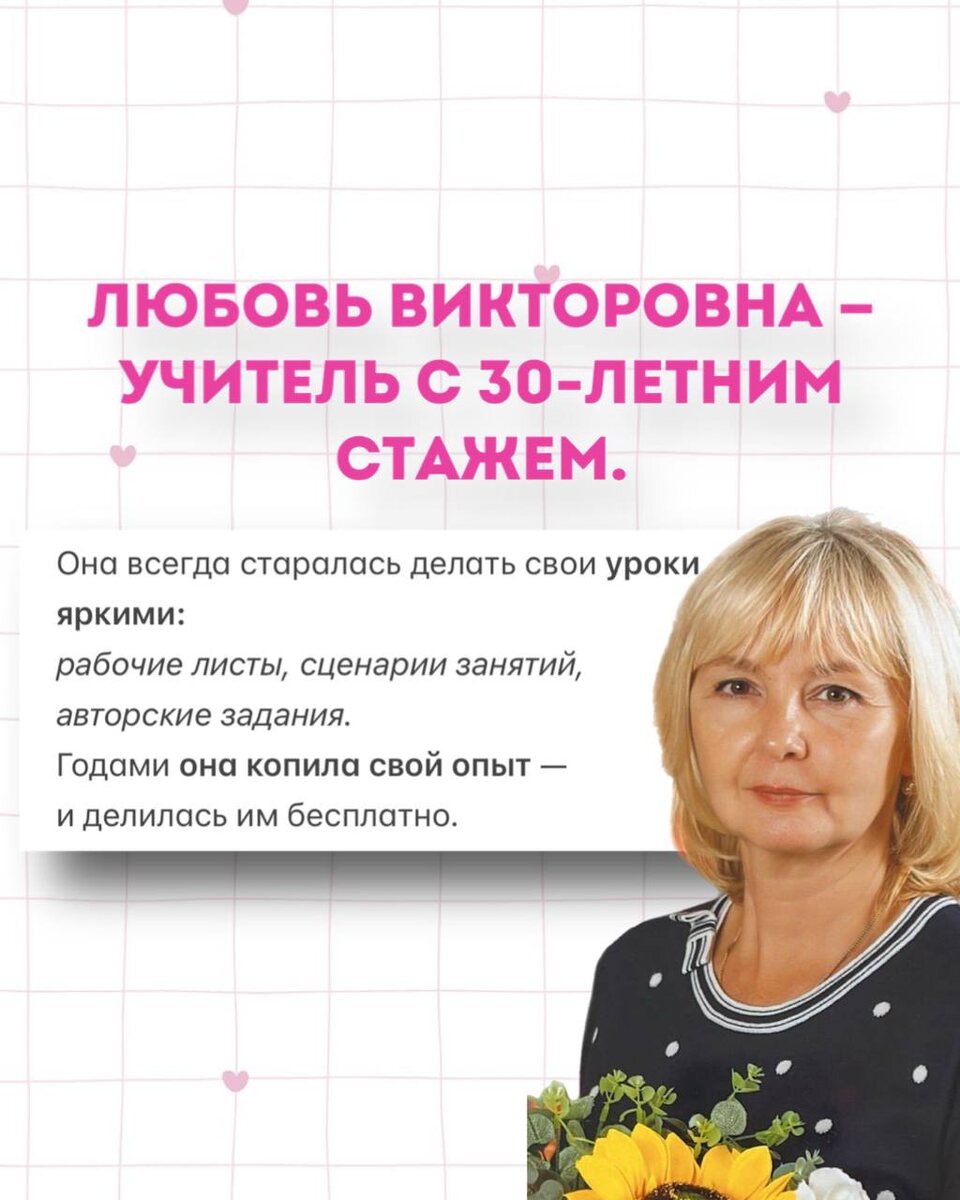 Как учитель с 30-летним стажем начала зарабатывать на своих материалах Любовь Викторовна — учитель с 30-летним стажем. Она всегда старалась делать свои уроки яркими: рабочие листы, сценарии занятий, авторские задания. Годами она копила свой опыт — и делилась им бесплатно. Сначала просто выкладывала на сайты: было приятно, что коллеги скачивают и благодарят. Но в какой-то момент она задумалась: «Если мои материалы действительно полезны — почему бы не превратить их в полноценный продукт?» Так она пришла к нам на курс. Что она сделала: 1. Посмотрела, что уже накопилось. Разобрала свои материалы, выделила те, что нравятся детям и помогают учителям. 2. Выбрала фокус — рабочие листы для начальной школы. Поняла, что именно они вызывают наибольший отклик у коллег. 3. Создала Telegram-канал для учителей. Начала делиться своими наработками и историями. Без танцев с бубнами, без блога и Reels. 4. Собрала небольшую, но тёплую аудиторию. И провела свой первый платный мастер-класс, на который пр