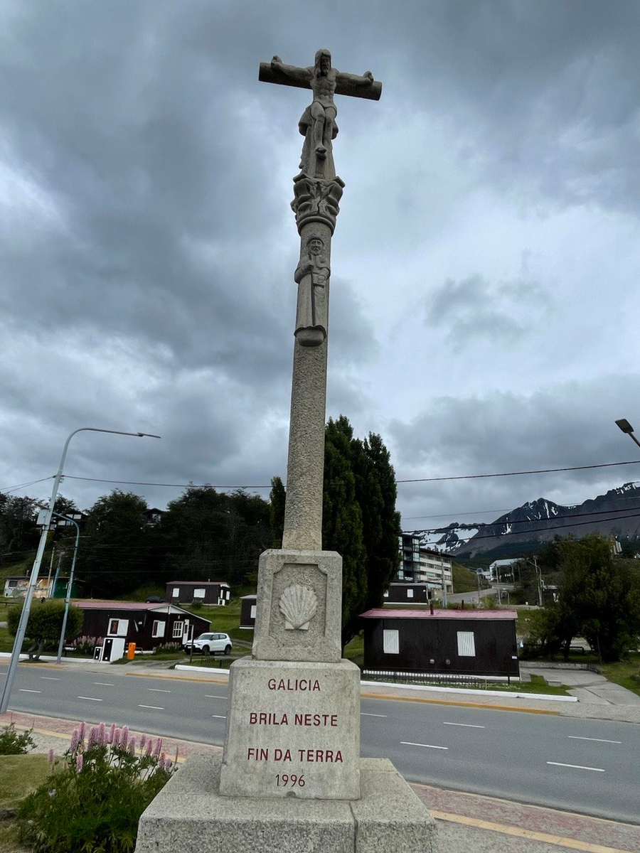 Прогуливаясь по Ушуайе с искренним удивлением на одной из площадей заметил стеллу с барельефом знакомого символа Эль Камино - раковиной морского гребешка. Рядом была установлена и мемориальная табличка о паломниках самого длинного Пути Святого Иакова. Об этой "встрече" упомянул ранее ЗДЕСЬ.