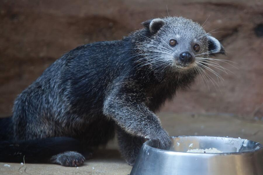 И не кошка, и не медведь — где ещё такого зверя можно встретить, как не в сказке. Оказывается, есть он в реальности и проживает в Юго-Восточной Азии в тропических непроходимых лесах, что и спасает его от вымирания. Бинтуронг — единственный вид одноимённого рода из семейства Виверровых. По более ранней классификации эти экзотические животные, внешне немного похожие на енотов, относились к семейству Енотовых. Иногда их называют кошачьими медведями — тело, за исключением коротких ног, напоминает кошачье, а вот неуклюжее передвижение по земле очень схоже с медвежьим.