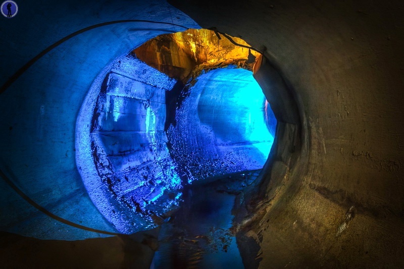 Сегодня мы расскажем про одну из самых малоизвестных и практически непосещаемых подземных рек одного крупного Дальневосточного города с названием Гнилая Падь, общей протяжённостью около полутора километров, которую в 1980-х гг. заковали в бетонный коллектор, сделав из неё дренажную ливневую систему с расположенных рядом улиц. Низовья этой речки выходят к озёрам бывшего совхоза и протекают по остаткам когда-то рассекавшего этот район протяжённого оврага. Здесь в неприметном склоне и расположен портал водовыпускного оголовка реки. В который мы и пойдём. Диаметр коллектора всего полтора метра, поэтому передвигаться по нему приходится пригнувшись. Из за сложности передвижения в эту речку из любителей подземелий почти никто и не ходит, к тому же из двадцати трёх подземных рек города, именно про эту вообще мало кто знает. Метрах в 50 от входа коллектор разделяется на три части, проходящих под дорогами. На стенах хорошо видны отметки от уровня воды, бывающего здесь во время ливней, поэтому во