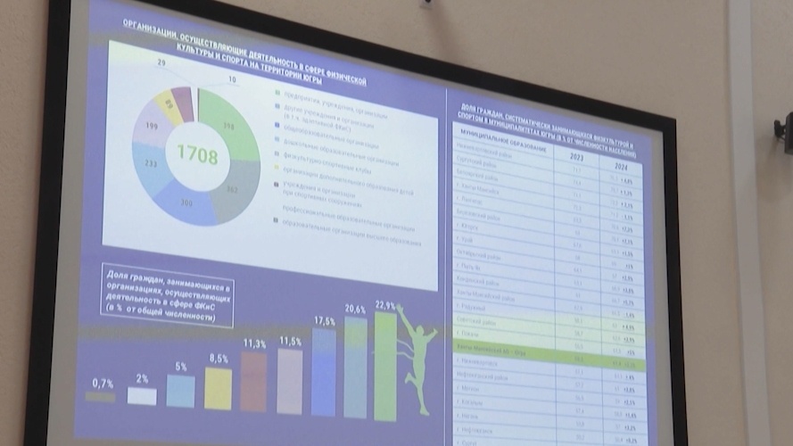 Нягань получила высокую оценку работы по развитию спорта на расширенном заседании коллегии департамента физической культуры и спорта Югры. Нягань получает сразу три кубка, столько же благодарственных писем. Город в лидерах в окружных спартакиадах, посвященных Дню Победы, дню рождения Югры. Из персональных наград — поощрение учителя физкультуры местной гимназии Сергея Никонова за отличную подготовку команды школьников на всероссийские «Президентские состязания по зимним видам спорта». «В соревнованиях такого рода мы не участвовали, нам не доводилось участвовать в финальной части. То есть это четвертый, заключительный этап, куда приехали команды — победители в своих регионах. И нам выпала честь представлять округ на данных соревнованиях», — рассказал Сергей Никонов, учитель физкультуры няганской гимназии. В Нягани проживают свыше 60 тысяч человек. Больше половины систематически занимаются физкультурой и спортом. Условия для этого есть. В городе 145 спортивных сооружений, в их числе Центр