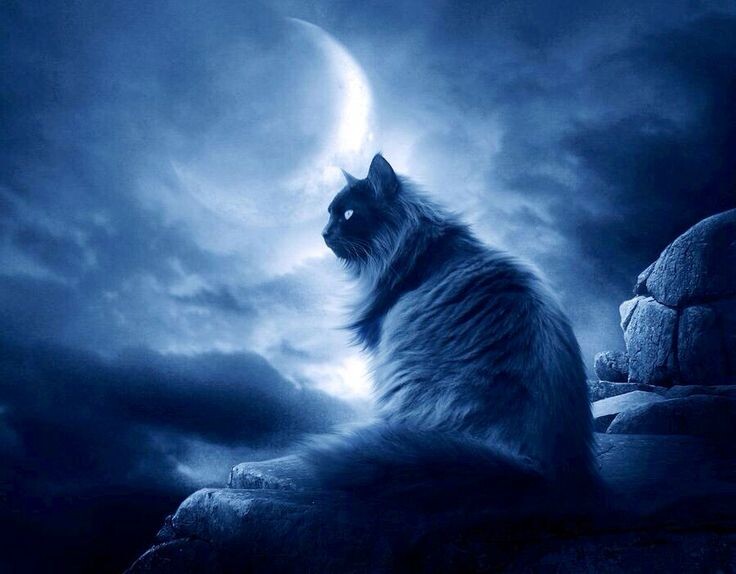 Маша выбежала на улицу и увидела, что из звезды появился кот. Он был не просто котом, а Лунным Котом с белоснежной шерстью, которая переливалась, как лунный свет. У него были большие, яркие глаза, которые светились, как звёзды.